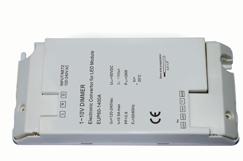 12-26W 700mA 0-10V/1-10V調光電源 輸入電壓: 120-240VAC
