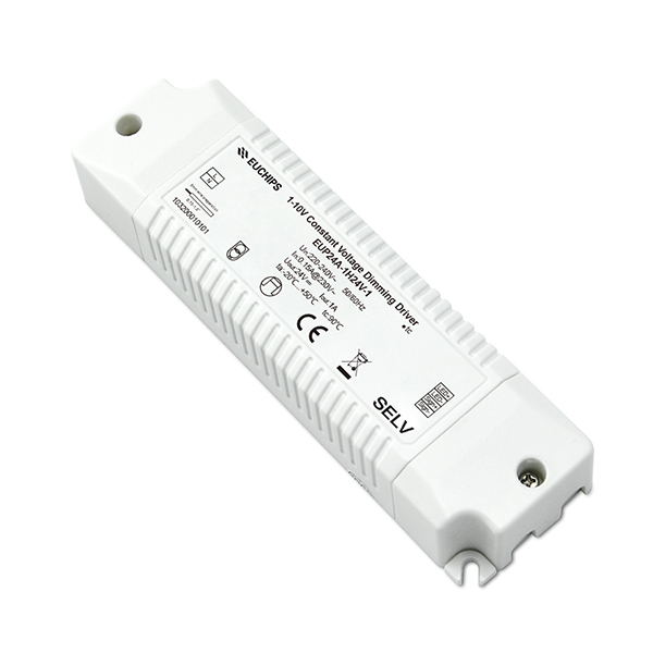 EUP24A-1H24V-1是一款可以用于室內的24W,24VDC,1-10V恒壓調光電(dian)源。這(zhe)款調(diao)光電(dian)源可以通(tong)過外部1-10V有源信號,可調(diao)電(dian)阻(zu)和PWM信號實現平滑(hua)調(diao)光的效果(guo)。