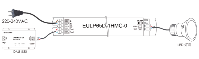 EULP65D-1HMC-0 是一款可以提供1050/1200/1400mA 3檔電流的DALI恒流調光電源。輸出電流可以通過DIP撥碼開關簡易設置,用DALI 主控/Touch DIM開關調光,曲線平滑、無閃爍。