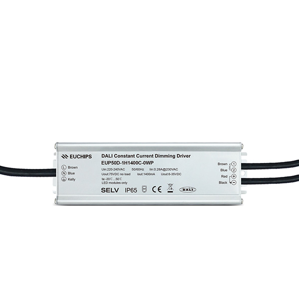 EUP50D-1H1400C-0WP一款50W交流變直流dali電源,符合DALI標準協議IEC62386。連接DALI主控或Touch DIM可以實現平滑的調光效果。IP65防水等級,適用于室內,室外燈具。