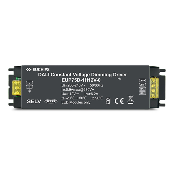 EUP75D-1H12V-0是一(yi)款(kuan)可以用于室內的(de)恒壓輸出LED調(diao)光(guang)驅動器。符合DALI標準協議IEC62386。這(zhe)款(kuan)驅動器可以通(tong)過(guo)連(lian)接(jie)DALI主控或Touch DIM可以實(shi)現平(ping)滑調(diao)光(guang)的(de)效(xiao)果。