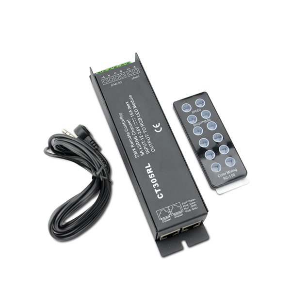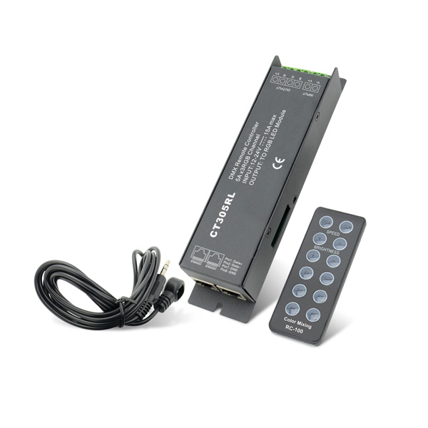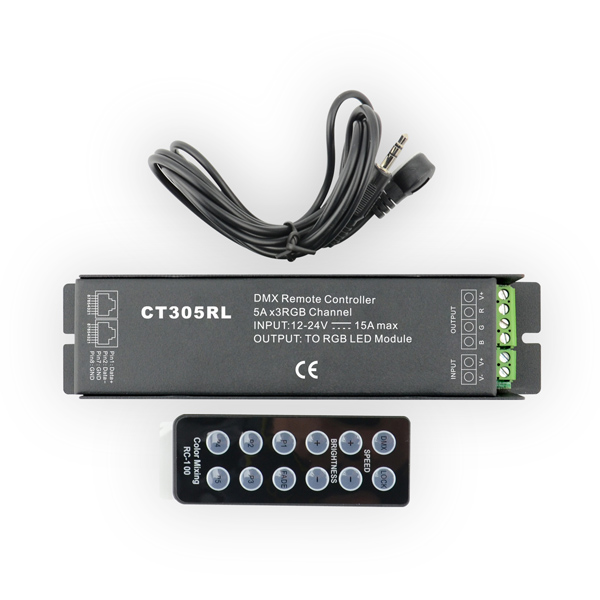 歡迎使(shi)(shi)用(yong) CT305RL DMX512解碼(ma)驅動器。CT305RL采(cai)用(yong)先(xian)進的微電腦(nao)控(kong)制(zhi)(zhi)(zhi)技術,把國際(ji)上廣泛(fan)采(cai)用(yong)的 DMX-512/1990標準數碼(ma)控(kong)制(zhi)(zhi)(zhi)信號轉換成模(mo)擬控(kong)制(zhi)(zhi)(zhi)信號。可選擇1~3路輸(shu)出通(tong)道,每通(tong)道可實現(xian)256級(ji)(ji) 控(kong)制(zhi)(zhi)(zhi)級(ji)(ji)別。可用(yong)于電腦(nao)數碼(ma)輸(shu)出調光臺與模(mo)擬硅箱的連接,建(jian)筑和(he)燈飾用(yong)LED燈具的控(kong)制(zhi)(zhi)(zhi)的使(shi)(shi)用(yong)場(chang)合。 可通(tong)過(guo)紅外遙(yao)控(kong)自(zi)(zi)由變換DMX控(kong)制(zhi)(zhi)(zhi)和(he)自(zi)(zi)變程序(xu),具有多種變化效(xiao)果。