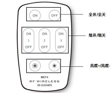 如果你想用遙控器同時控制所有的燈,先按“全開”按鈕;如果你想用遙控器進行單獨控制,先按相應的“組開”按鈕,然后再選進行亮度調節。
