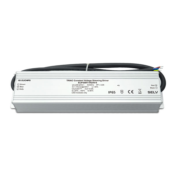 EUP300T-1H24V-0WP是一款恒壓輸出LED調光驅動器。這款驅動器支持前沿切相和后沿切相調光器,可以與多品牌系統(飛利浦,ABB,路創,西門子,西蒙,松下等)配合使用,實現平滑調光的效果。