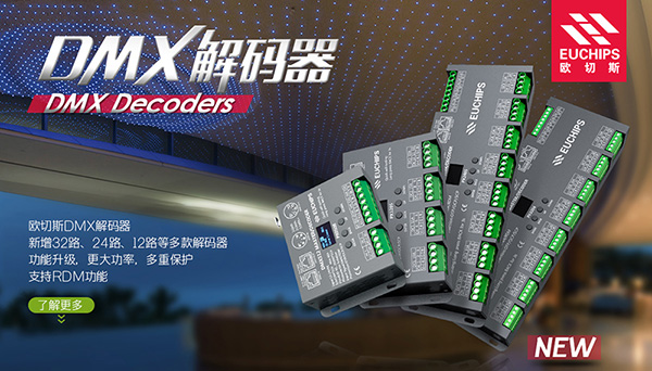 同時DMX512系列還有新品解碼器推出,最多有32通道,性能更強大。