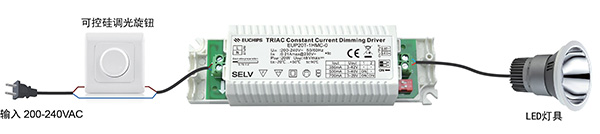 應用方式,可控硅恒流調光電源可以與調光旋鈕結合使用,如下圖所示: