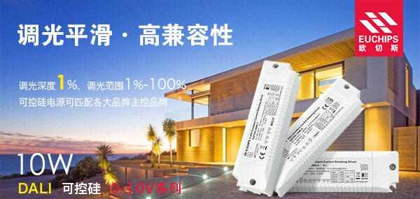 來源: 2017-06-08上期我們有針對歐切斯EUCHIPS的新品10W調光驅動器做一些介紹,主要帶大家簡單全面的了解了此次DALI/可控硅/0-10V系列10W的新品信息,這期我們主要講解這三款DALI調光電源、可控硅調光電源、0-10v調光電源產品的優勢,以進一步了解它們的功能和品質。總的來說,調光平滑、高兼容性、1%調光深度是他們皆具備的優勢,下面我們從各個角度具體來看。