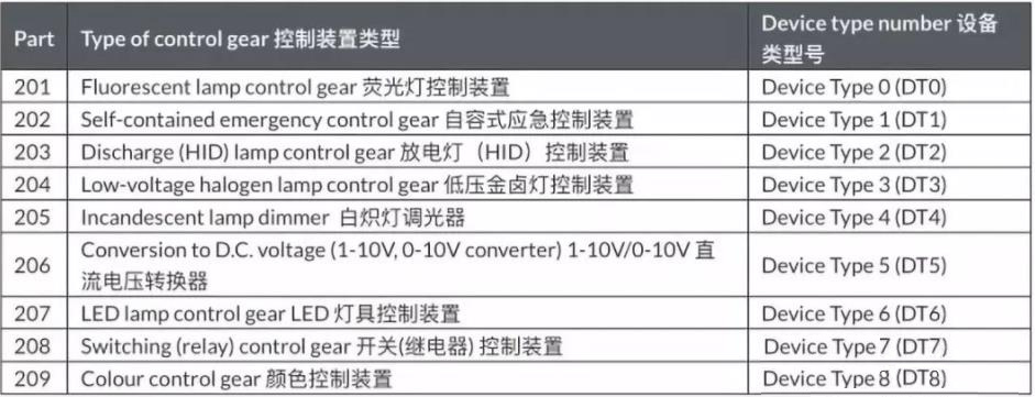 從上表中可以看出,Part 207 描(miao)述的(de)是(shi) Device Type 6 這種控制設(she)備的(de)特性需求, 這種控制裝置(zhi)也就(jiu)是LED驅動電源(yuan)。為了稱(cheng)呼的方便, 又(you)把 Device Type 6 縮寫(xie)為 DT6,所以 DT6 就(jiu)是 DALI 調光 LED 驅動電源。