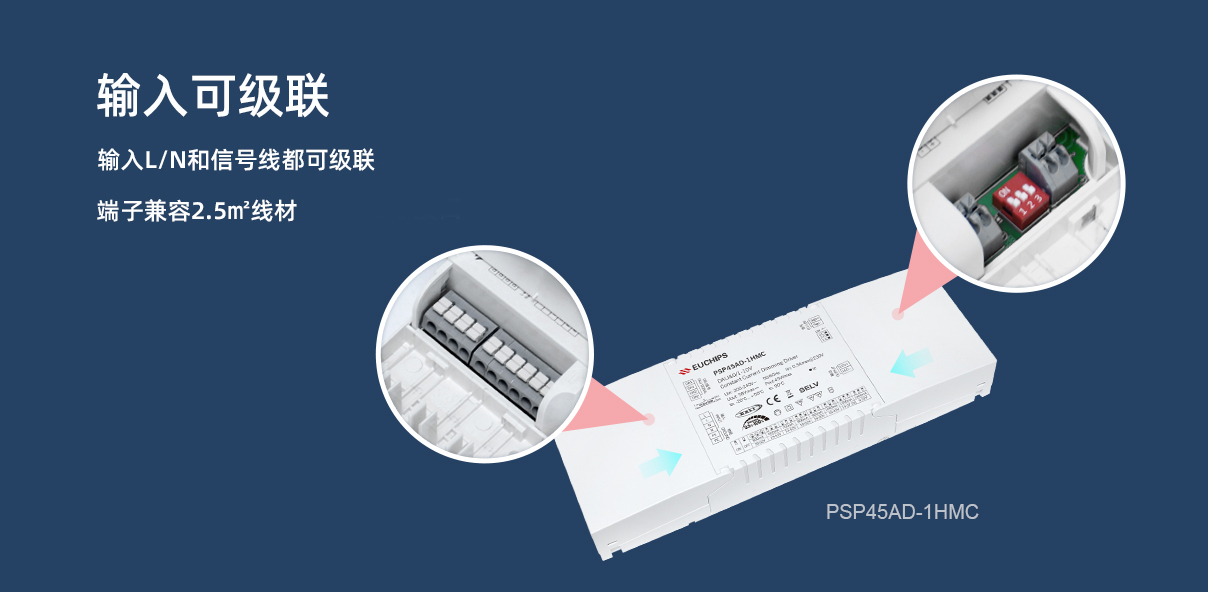PSP45AD-1HMC電源輸(shu)入(ru)L/N和(he)信(xin)號線都可級(ji)聯(lian),接線端子(zi)兼容(rong)2.5㎡線材。