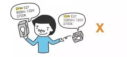 這個方法擱以前來說確實沒啥毛病,因為早期的白熾燈和日光燈還真是這么回事,瓦數越大代表耗電量更大,燈泡自然更亮。但是,現在都2021年了,LED已經發展的相當成熟,在相同亮度的情況下,白熾燈需要消耗85W電力,而LED大概只消耗12W。所以用瓦數判斷亮度的方法顯然已經過時。現在流行根據包裝上的流明值判斷。流明值越高,照度越高。同樣空間,亮度也更亮。