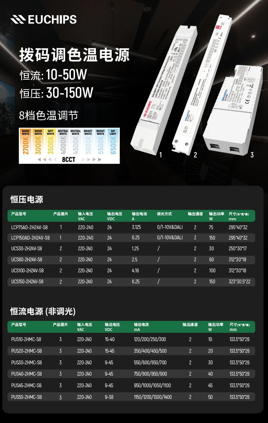 1. 智能調光調色溫電源:明暗亮度隨心調,冷暖色溫隨心變。