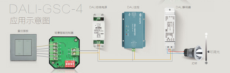 最近(jin)歐切斯推出了一(yi)款(kuan)DALI分(fen)組(zu)(zu)、場(chang)景(jing)控(kong)制(zhi)(zhi)(zhi)器DALI-GSC-4。DALI-GSC-4是一(yi)個(ge)多(duo)功能設備(bei),可(ke)以和市(shi)面(mian)上普(pu)通的(de)(de)復(fu)位開關進行配套使用。最主(zhu)要的(de)(de)功能分(fen)兩(liang)塊:分(fen)組(zu)(zu)控(kong)制(zhi)(zhi)(zhi)和分(fen)場(chang)景(jing)控(kong)制(zhi)(zhi)(zhi)。利用該控(kong)制(zhi)(zhi)(zhi)器上的(de)(de)撥(bo)碼(ma)開關可(ke)以選(xuan)擇(ze)設置(zhi)為分(fen)組(zu)(zu)控(kong)制(zhi)(zhi)(zhi)或分(fen)場(chang)景(jing)控(kong)制(zhi)(zhi)(zhi)。場(chang)景(jing)控(kong)制(zhi)(zhi)(zhi)旨在選(xuan)擇(ze)不(bu)同(tong)的(de)(de)場(chang)景(jing),分(fen)組(zu)(zu)控(kong)制(zhi)(zhi)(zhi)不(bu)僅(jin)可(ke)以選(xuan)擇(ze)不(bu)同(tong)的(de)(de)燈組(zu)(zu),還可(ke)以控(kong)制(zhi)(zhi)(zhi)燈組(zu)(zu)的(de)(de)開/關,調節燈組(zu)(zu)亮度。而且DALI-GSC-4是多(duo)主(zhu)控(kong)兼容的(de)(de)。這意味著在同(tong)一(yi)個(ge)DALI 系(xi)統中可(ke)以安(an)裝(zhuang)多(duo)個(ge)控(kong)制(zhi)(zhi)(zhi)模塊。同(tong)時DALI-GSC-4的(de)(de)設計滿足DALI標準協議IEC 60929(DALI V0) 和IEC62386(DALI V1)。