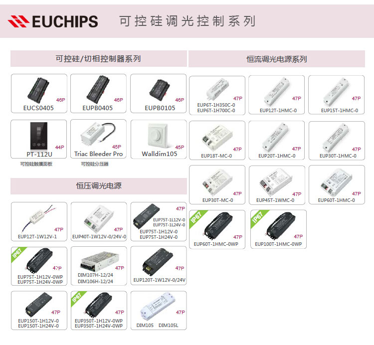 EUCHIPS是(shi)國(guo)內LED調光(guang)控(kong)制老(lao)品(pin)牌,至(zhi)今有(you)著11年的(de)調光(guang)控(kong)制經驗。旗(qi)下可(ke)控(kong)硅(gui)調光(guang)系(xi)列的(de)產品(pin)種(zhong)類非常豐富,而(er)且隨著技術的(de)不斷強大(da),產品(pin)性能已經與(yu)國(guo)際上大(da)品(pin)牌的(de)產品(pin)相當。 可(ke)控(kong)硅(gui)調光(guang)電源雖(sui)然只是(shi)可(ke)控(kong)硅(gui)家族中的(de)設備之一,但是(shi)它(ta)的(de)好壞,直接關系(xi)到燈具的(de)調光(guang)效果和燈具的(de)使用壽命,在LED調光(guang)中擔(dan)任著重要角色。
