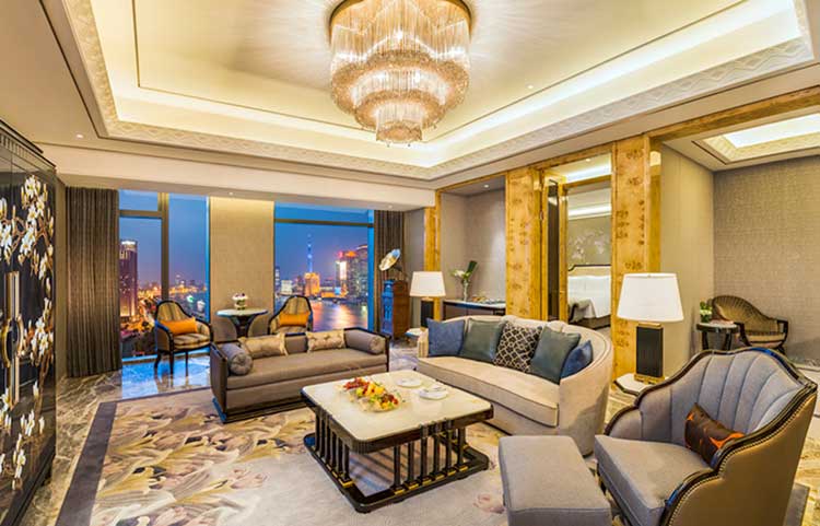 坐擁黃金地段。上海萬達瑞華酒店坐落在外灘金融中心,與陸家嘴隔江相望,可謂是外灘的最后一塊寶地,位置極其優越。