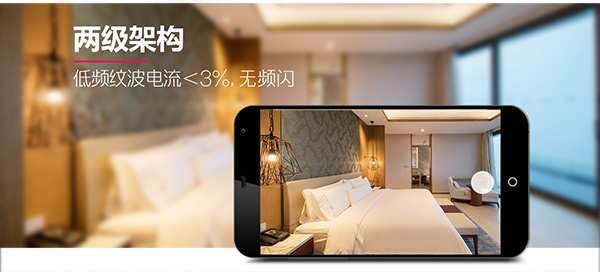 2級架構的(de)(de)電源,實現低頻(pin)紋波電流<3%,調光無頻(pin)閃,加(jia)強(qiang)對眼睛(jing)的(de)(de)保護,提倡健(jian)康照明。