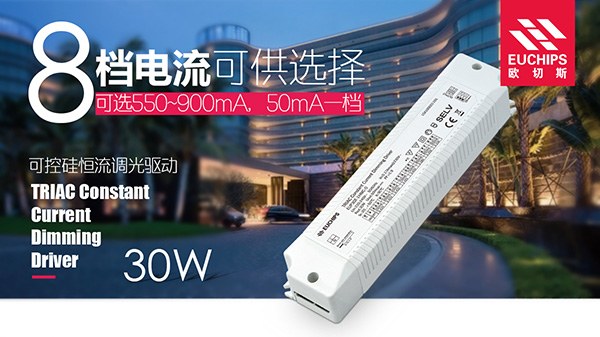 來源: 2017-07-24【摘要】歐切斯EUCHIPS近期更新了1款可控硅調光電源產品,這款產品提供550/600/650/700/750/800/850/900mA,8檔輸(shu)出電流(liu)(liu)可(ke)選。符合(he)CCC和(he)CE認證,可(ke)兼容市場主流(liu)(liu)品牌旋鈕和(he)主控,產品具備5大特點,下面一(yi)一(yi)為(wei)大家介紹。