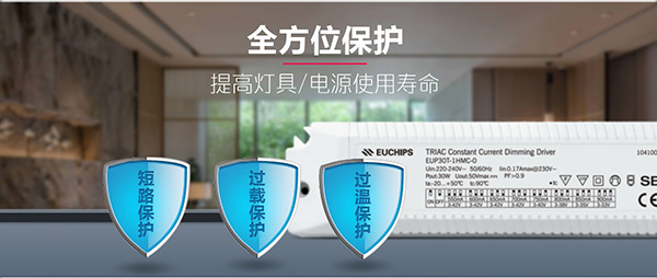 這款可控硅調光電源支持短路保護,過載保護和過溫保護,可全方位保護可以提高燈具和電源的使用壽命。短(duan)路保護:關斷(duan)輸出(chu),移除故障后自恢復。過載保(bao)護(hu):超過輸出電(dian)壓時(shi), 輸出電(dian)流下降, 減輕負載自動恢(hui)復。過溫(wen)保護:關閉輸出,溫(wen)度正常后自動恢(hui)復。