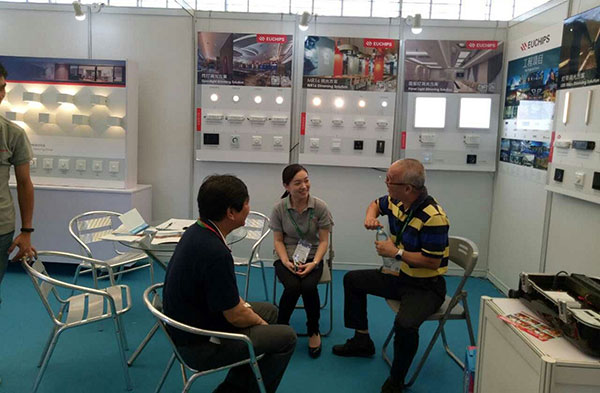 歐切斯市場(chang)經理(li)和中國照明(ming)學會秘書(shu)長(chang) 竇林平先(xian)(xian)生、木林森照明(ming)獨立董(dong)事 唐國慶先(xian)(xian)生在交流。