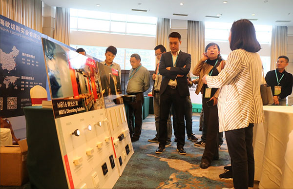 通過實(shi)物(wu)展板和展示箱向與會人士(shi)詳細介紹歐切(qie)斯產品和調光性能