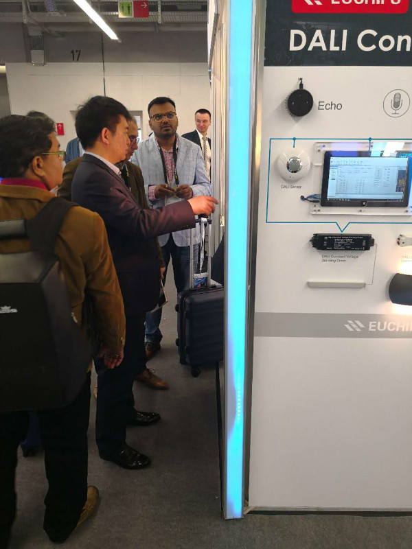 大(da)家好像對這(zhe)塊展(zhan)板(ban)(ban)比較感興趣(qu)?這(zhe)個DALI系統整體應(ying)用(yong)展(zhan)板(ban)(ban)。采用(yong)最(zui)新(xin)的(de)無線控制DALI調光,實現(xian)了Siri,Echo的(de)無線語音控制,智能(neng)音箱對話實現(xian)燈(deng)光的(de)開閉,調光等(deng)功能(neng),8寸液晶(jing)屏(ping)的(de)操(cao)(cao)作(zuo)界面,操(cao)(cao)作(zuo)方便,人性化(hua)。擁有第三方協議的(de)網(wang)關(guan),讓第三方的(de)系統輕松匹配對接我們(men)的(de)產(chan)品。
