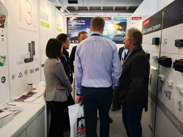 來歐切(qie)斯(si)展位操作體(ti)驗一下?(歐切(qie)斯(si)的(de)小伙(huo)伴和現場客(ke)戶愉快的(de)交談)
