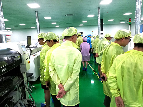 28日一(yi)早,大家聚集在一(yi)起。在我們的技術人員帶領下,穿(chuan)戴(dai)好防靜(jing)電裝備之(zhi)后去(qu)生產車間參觀和考察產品的制造工藝和生產流程。