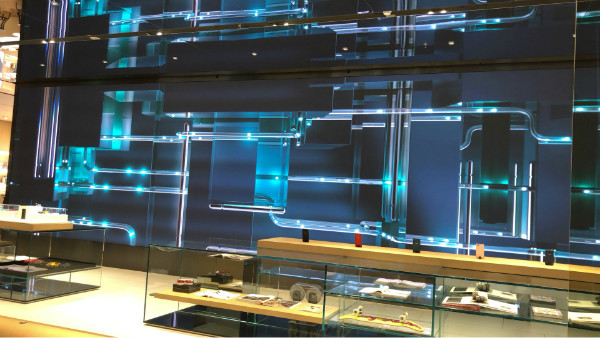 產品(pin)展示區,通(tong)過重點照明的(de)強烈的(de)光(guang)影效(xiao)果(guo)強調材料的(de)形態和紋路,提(ti)升產品(pin)形象(xiang)或品(pin)牌(pai)形象(xiang),傳(chuan)遞產品(pin)價值感。