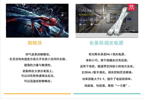 帥氣苗條的蜘蛛俠,在靈活性和速度方面幾乎在狹小空間內無敵。歐切斯細長條調光電源,對于像車站,隧道這種空間有限,對電源尺寸要求高的場合,在尺寸和性能上有極大地優勢。