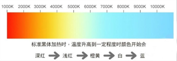 當色溫升高時,光源呈現的顏色大致是經歷一個紅—橙—黃—白—藍的漸變過程。