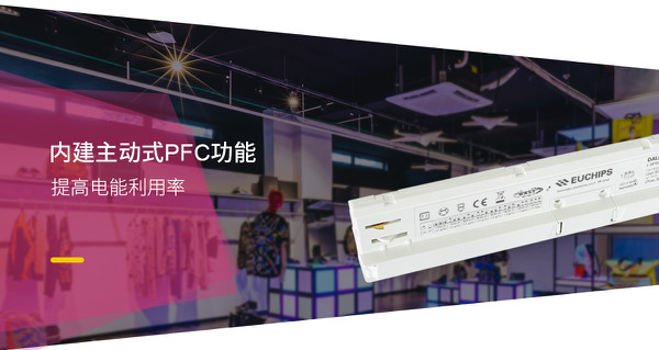 新品導軌驅動電源內建主動式PFC功能,提高電能利用率,節能更環保。