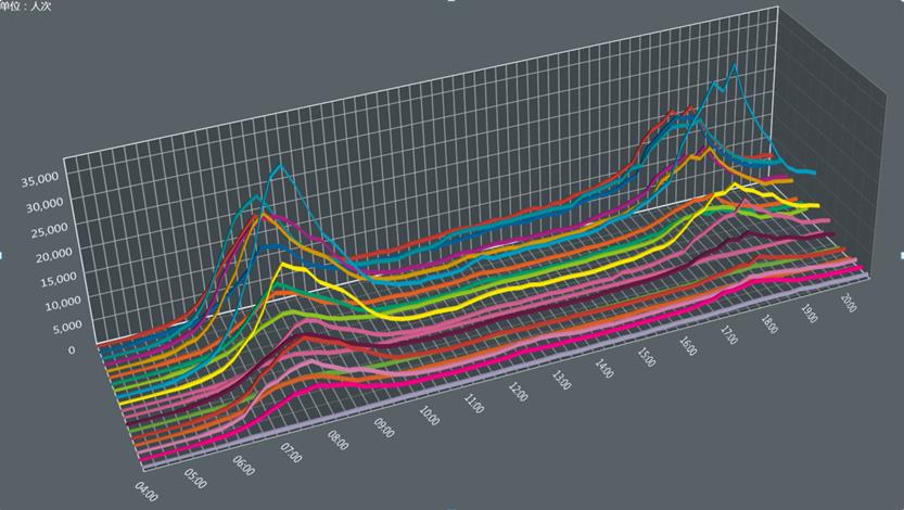 地鐵車站運行時段分類(客流-時間)根據客流量不同,地鐵車站大體分為:停運、準運、低谷、平谷、高峰時段,各個時段對照度的要求也不盡相同。
