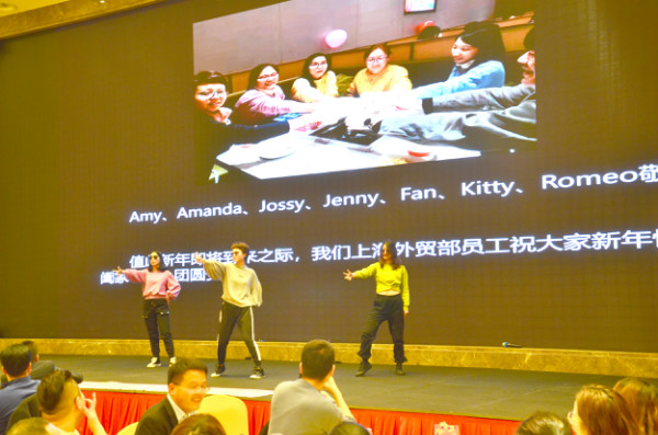 外貿(mao)同事(shi)們用一支辣舞,拉開了整場年會的(de)帷幕。歐切斯人歡(huan)聚(ju)一堂,共慶(qing)歲末(mo),展望新(xin)年!