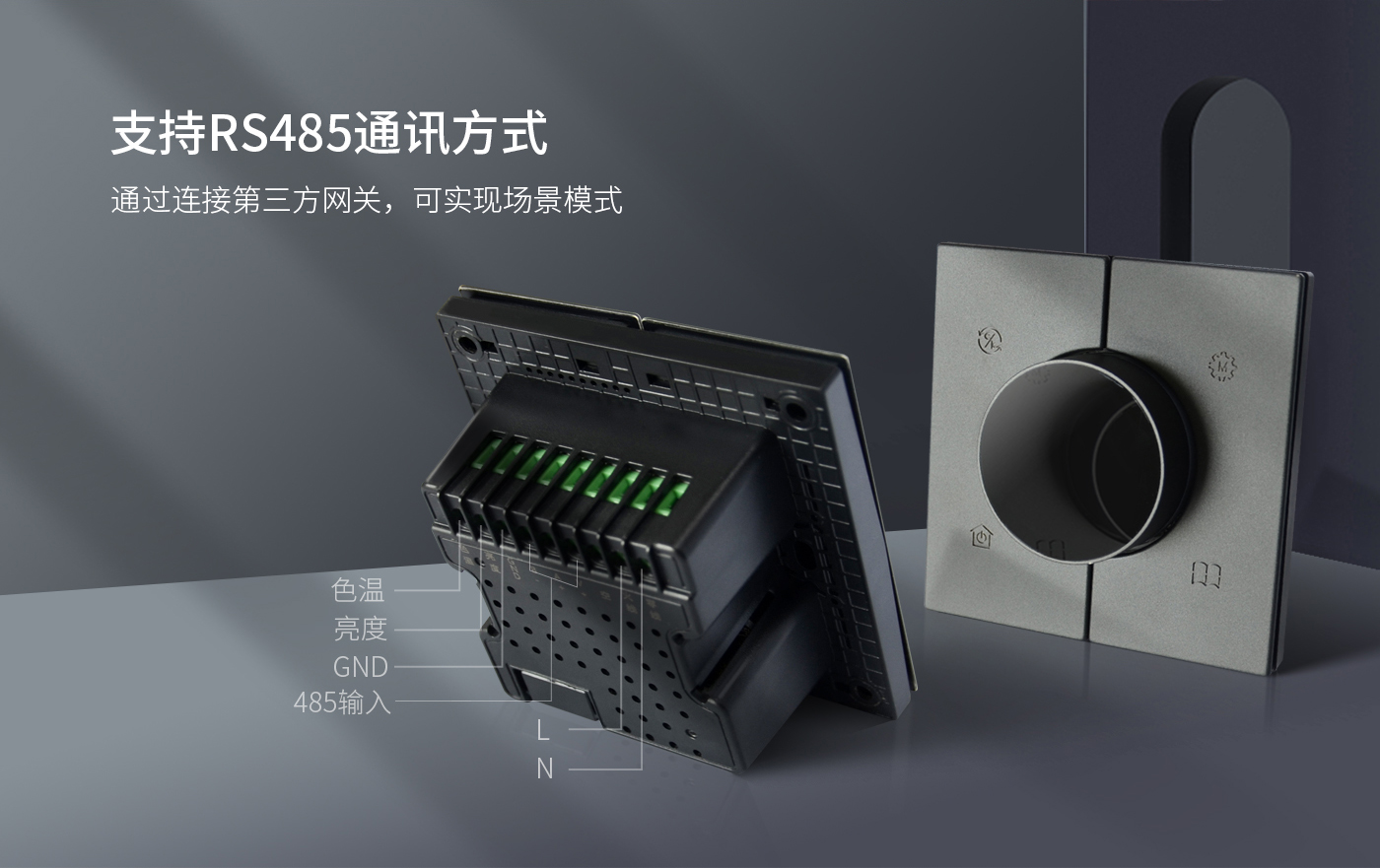 歐切斯(si)0-10V智能(neng)調(diao)(diao)光調(diao)(diao)色(se)溫旋(xuan)鈕面板支(zhi)持RS485通訊協(xie)議,可通過連接第三方網關,實(shi)現對場景(jing)調(diao)(diao)用等(deng)功(gong)能(neng)。