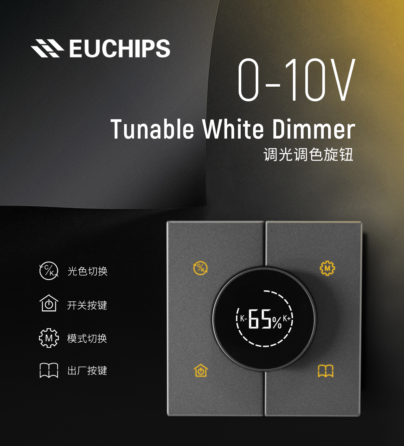 六月,正當夏季,萬物崢嶸,歐切斯開足馬力,0-10V智能調光調色溫旋鈕面板全新上市!經典灰色,不事張揚,輕松調節燈光亮度和色溫。不管是愉悅的商業環境,還是溫馨的居住環境都可以輕松打造,讓生活從一鍵開始!體驗智能燈光的樂趣!
