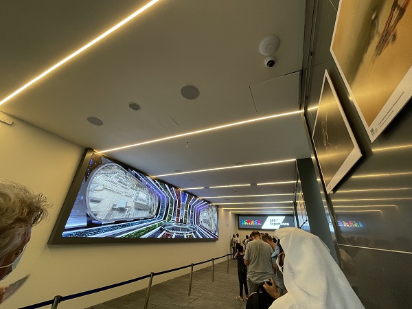 沙丘斜坡為開放部分,參觀者通過緩緩上升的沙丘斜坡步入這個開放的會客廳,兩邊連續的14塊大型電子屏不斷展示該國的自然景觀和創新成就。照明調光部分,使用歐切斯調光電源,延續場館風格與氛圍定位,結合自然光線的基礎上,打造一個橫貫中空格局的大型開放區域,與大型電子屏渾然一體,串聯起空間內最為突出的視覺重點,營造喜迎全球貴客的敞亮感。