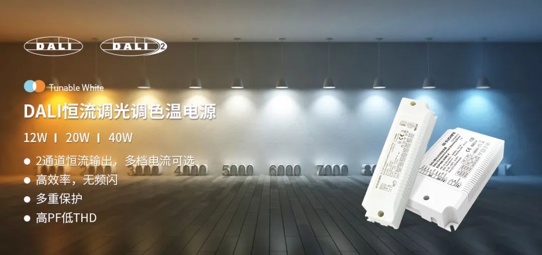 歐切斯DALI恒流調光調色溫電源:①. 支持2通道恒流輸出,輸出電流可以通過撥碼開關進行控制,多檔電流可選;②. 內置高性能MCU芯片,挑戰調光極限,實現0.1%深度調光,全程調光平滑自然,無頻閃;③. 內置短路、過載、過壓保護,有效避免電路發生故障時而造成設備元件的損壞;④. 配置高PF低THD,穩定可靠,有效提高電能利用率。