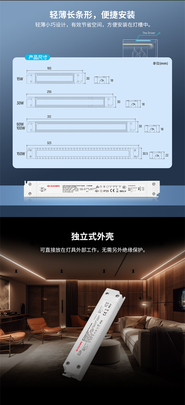 超薄長條-不可錯過的歐切斯非調光恒壓電源解決方案!