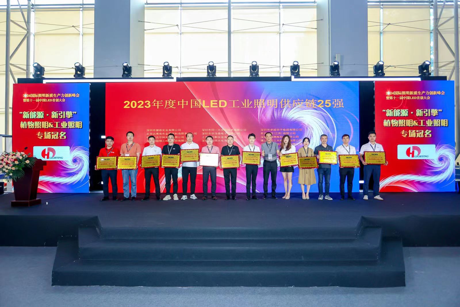 6月11日,在廣州國際照明展覽會8.1館舉辦的2024國際照明新質生產力創新峰會暨第十一屆中國LED首創大會“新能源·新引擎”植物照明&工業照明專場上,隆重舉行了2023年度中國LED工業照明供應鏈25強榜單的表彰儀式。這一表彰旨在認可那些在LED工業照明領域展現卓越貢獻和強大影響力的企業。