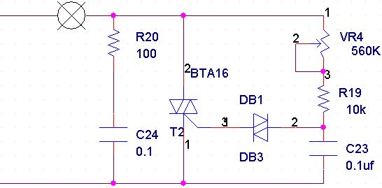 很多人以為電路圖是一個非常艱難而復雜的,但是其實只要我們仔細分析一下,就會看到一張清晰簡單地電路圖了。那么我們在了解可控硅調光器的原理之前,首先來看一張電路圖,這張電路圖清楚地展示了可控硅調光器原理。