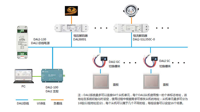 最后(hou)不(bu)得不(bu)說的(de)(de)一點是DALI調光電源的(de)(de)安裝非常簡化,可以(yi)省去很多麻煩(fan)。系統總線式結構,不(bu)需要劃分區(qu)域,減少布線難度(du),使用(yong)設備均連(lian)接(jie)同(tong)一Bus,不(bu)需要普通的(de)(de)機(ji)械開(kai)關,另外(wai)調光器,控制面板不(bu)是直接(jie)控制光輸出(chu)。相(xiang)反數字系統需要一個小電源為Bus供電。