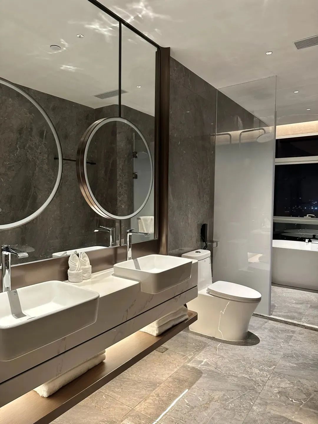 走進客房,仿佛步入了一個靜謐的時光走廊。墻面及地面采用大面積石材裝飾,既耐磨易清潔,又增添了些許文化氣息。房間內,各項現代設施一應俱全,而歐切斯可控硅智能調光系統根據空間布局與光線需求,提供個性化解決方案,讓居住體驗更加舒適愜意。隨著外部光源的變化,室內的裝飾肌理在燈光的映襯下變得更加豐富細膩,讓人仿佛置身于一個夢幻般的世界。