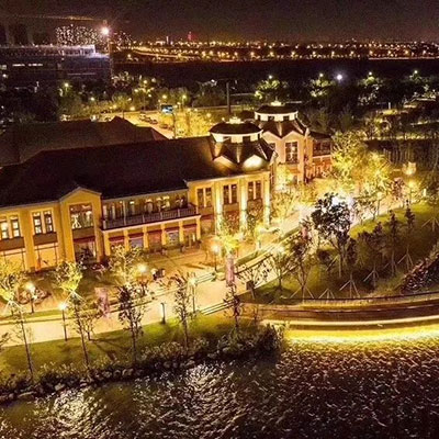 大漁灣湖濱風情商業街位于昆山智谷小鎮杜克大道,總建筑面積3000平方米,建筑設計上整體將昆派風情,融入中歐建筑。是一個集生活、情調、健康、生態于一體的魅力港灣。這是歐切斯EU-BUS系統在戶外景觀照明較為全面的體現。