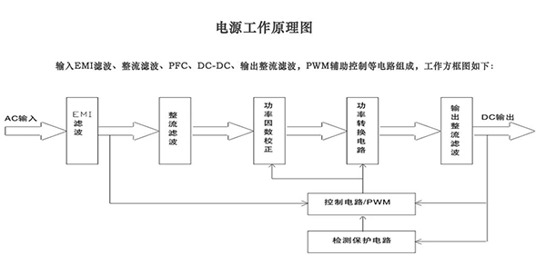 電源由如下幾個主要部分組成:當市電進入電源后,先用扼流線圈和電容濾波去除高頻雜波和干擾信號,然后經過整流和濾波得到高壓直流電。接著通過開關電路把直流電轉為高頻脈動直流電,再送高頻開關變壓器降壓。然后濾除高頻交流部分,最后輸出低壓直流電。