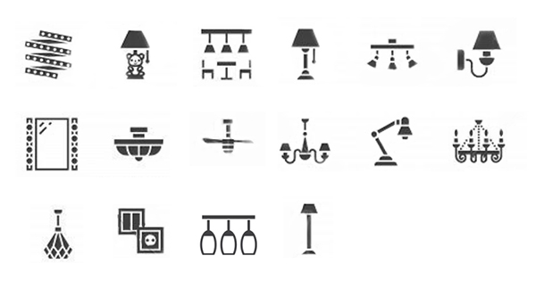 吸頂燈,吊燈,筒射燈,燈帶/燈條,壁燈,燈泡,燈管,臺燈,面板燈,吊扇燈等。