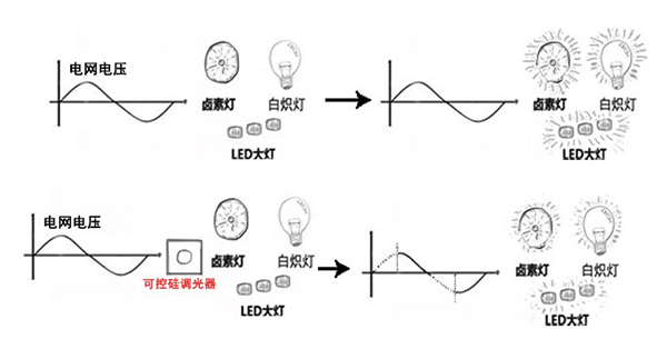 可控硅調光破壞了正弦波的波形,
