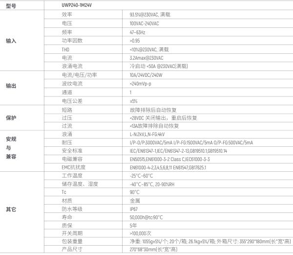 240W 24VDC 防水恒壓電源 LED調光電源UWP240-1M24V