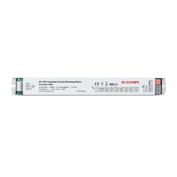 EULP20A-1HMC是一款可(ke)以(yi)提供350/400/450/500/550/600/650/700 8檔電流的LED驅動器(qi)。輸出電流可(ke)以(yi)通過(guo)DIP撥碼開關簡易(yi)設置(zhi),可(ke)以(yi)通過(guo)外部(bu)0/1-10V有(you)源信號(hao),可(ke)調(diao)電阻,PWM信號(hao)實現平滑調(diao)光;當(dang)不接外信號(hao)時,可(ke)作(zuo)為常(chang)規電源使用。