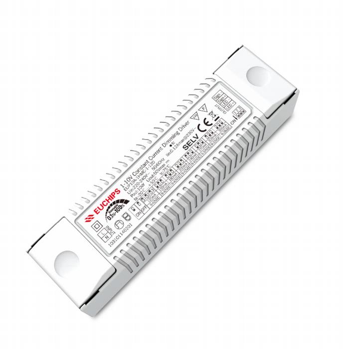 EUP10A-1HMC-1-120是一款可以提供120/150/180/200/240/270/300/350mA8檔電流的LED調光驅動器。輸出電流可以通過DIP撥碼開關簡易設置,可以通過外部0/1-10V有源信號,可調電阻,PWM信號實現平滑調光;當不接外信號時,可作為常規電源使用。產品特點