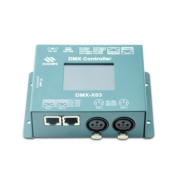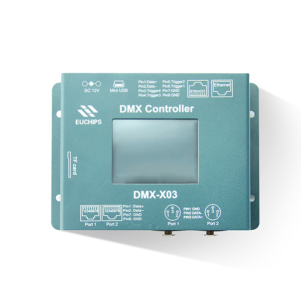 EUCHIPS? DMX-X03是一套用于控制建筑室內外亮化的全彩LED DMX控制系統,可以在聯機和獨立兩種模式下工作。它包含場景編輯程序,根據不同的需求可以通過電腦下載的程序編輯各種燈光效果。該控制系統實現R,G,B各256級灰度,共可表現1677萬種顏色,真正顯示全彩色。