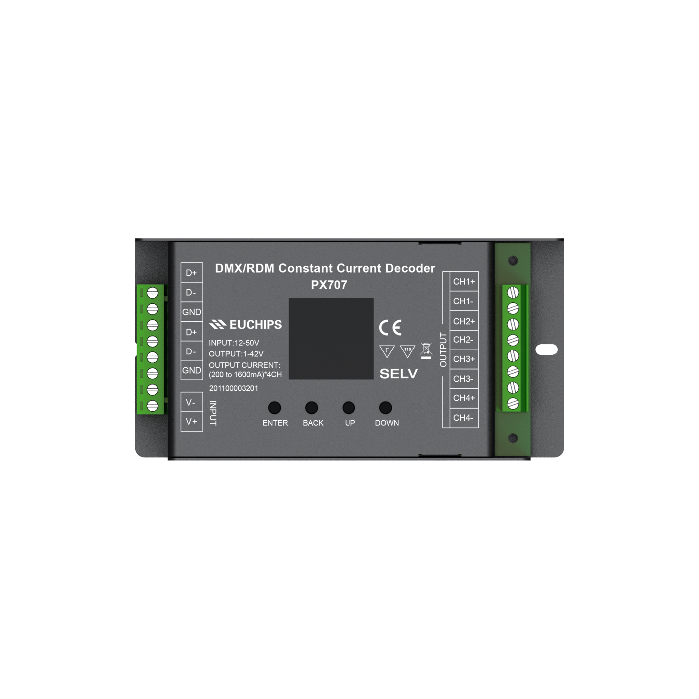 4通道 200-1600mA DMX/RDM恒流解碼器PX707
